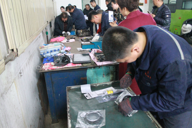 修理工賽區(qū)要求選手們在規(guī)定時間內(nèi)保質(zhì)保量的將手中的有問題的汽車配件的毛病找到并修好,最后拿到車上進行檢驗。修理工選手們在各自準(zhǔn)備好自己的修理工具后,隨著一聲哨響,比賽開始,大家有條不紊地熟練的更換著修理工具,拆解著配件,雖然都在默默的忙活著,但能感覺得到一種緊張的競爭氣氛。