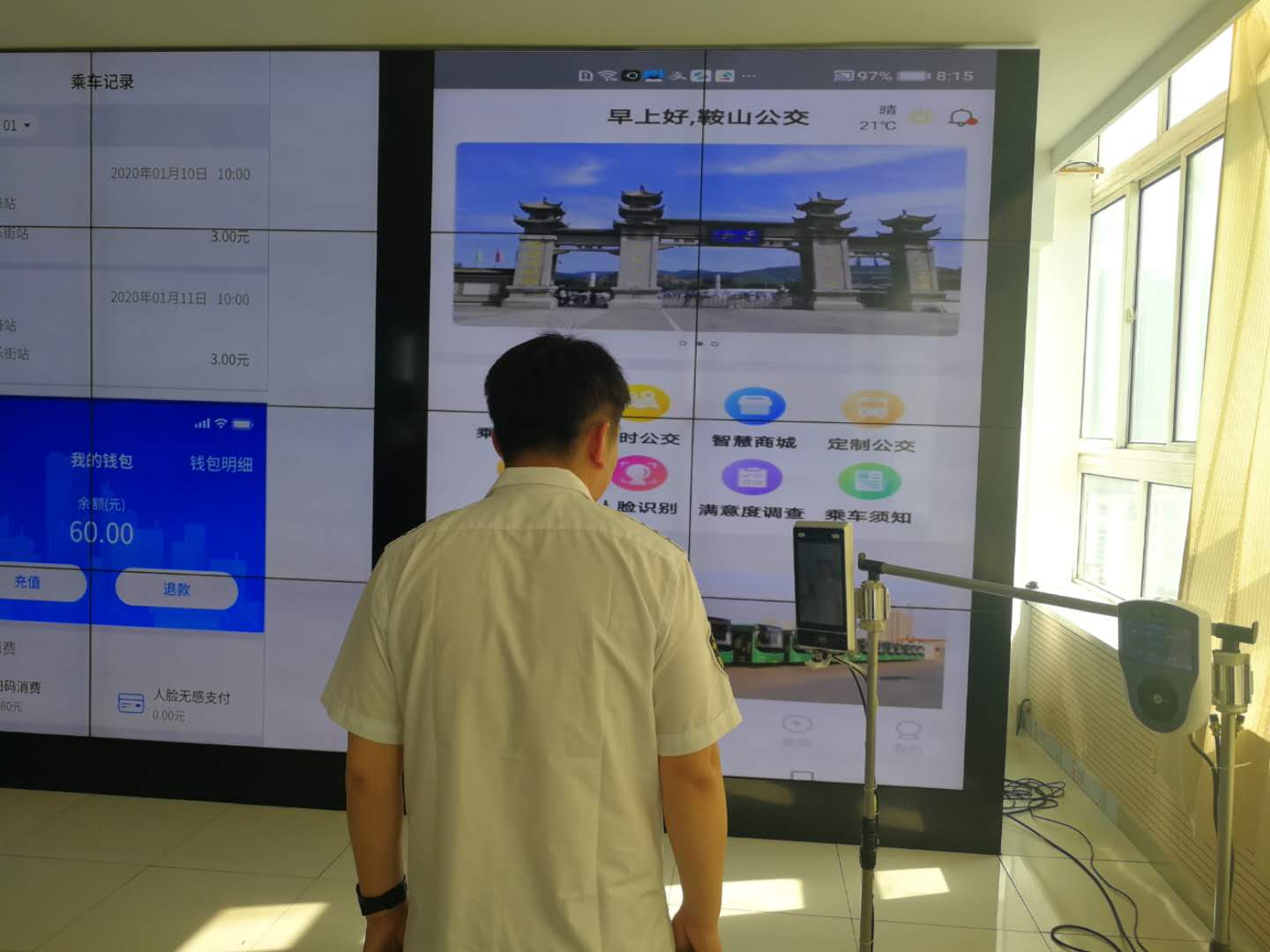 隨著全市“公交都市”創(chuàng)建工作穩(wěn)步推進(jìn),鞍山交運(yùn)集團(tuán)推出智慧公交APP平臺(tái),使鞍山市成為全省首個(gè)擁有集線上營業(yè)廳、掃碼乘車、線路查詢、定制公交,滿意度調(diào)查、尋物啟事、智慧商城、人臉識(shí)別等8項(xiàng)功能于一體智能乘車系統(tǒng)的城市。實(shí)現(xiàn)普通IC卡與智慧公交APP自由高效并行,引領(lǐng)全省公交行業(yè)智慧發(fā)展,使鞍山公交智能化水平躋身全國先進(jìn)行列。此APP電子公交卡與普通公交卡享受同等優(yōu)惠,普通卡押金20元可以退還,電子卡開卡費(fèi)用10元,不予退款,乘客可自由選擇。
