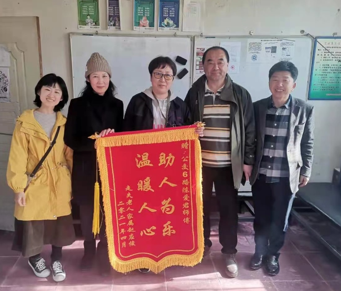 14日下午,老人家屬來到市交運(yùn)集團(tuán)第三汽車分公司客運(yùn)八隊(duì)調(diào)度室,為陳愛軍送上錦旗,表達(dá)謝意。據(jù)家屬介紹,老人患小腦萎縮多年,那天出門后就不知道家在哪里了,老人的家屬一再向陳愛軍師傅表示感謝:“多虧有你熱心幫助,謝謝!謝謝!”